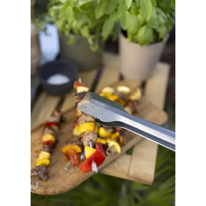 Le dernier ustensile du set pour barbecue est la pince XL. Également constituée d’inox, cette pince à barbecue mesure 40 cm de long : vous aurez donc l’allonge parfaite pour saisir vos aliments sans trop vous approcher du feu. Le talon de la pince est pourvu d’une fente destinée à lever les grilles de votre barbecue sans risque.
