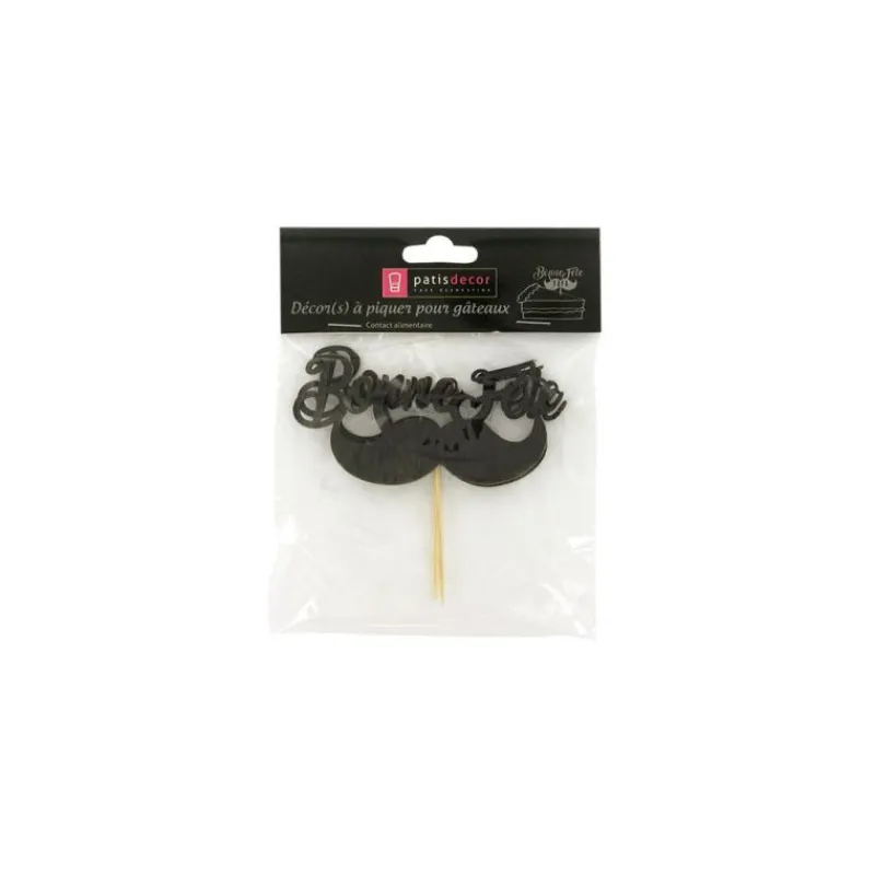 Décor Bonne Fête Moustache sur Pic (x2) Patisdécor