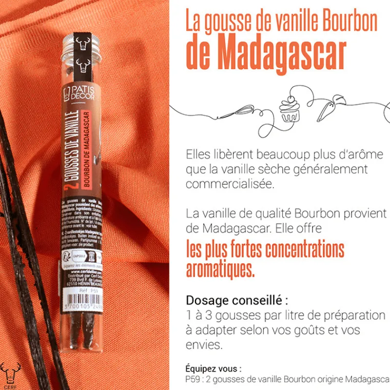 Envie de donner un goût unique à vos préparations ? Découvrez les Gousses de Vanille Bourbon Madagascar (x2) Patisdécor. Parfumées et moelleuses au toucher, les gousses de Vanille Bourbon libèrent des arômes uniques et gourmands.