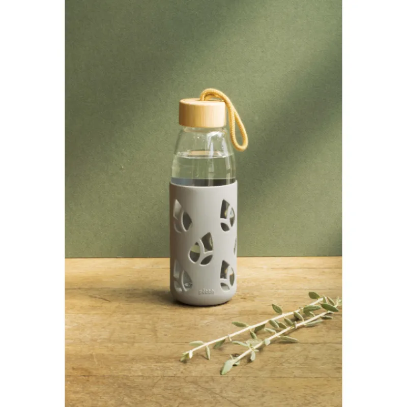 Vous souhaitez diminuer vos déchets plastique ? Laissez-vous convaincre par la bouteille en verre avec protection silicone gris Pebbly qui vous accompagnera au bureau, au sport ou lors d’un pique-nique !