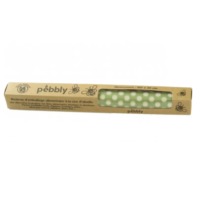 Rouleau Emballage Alimentaire Cire Abeille Pois Vert 30 x 100 cm Pebbly