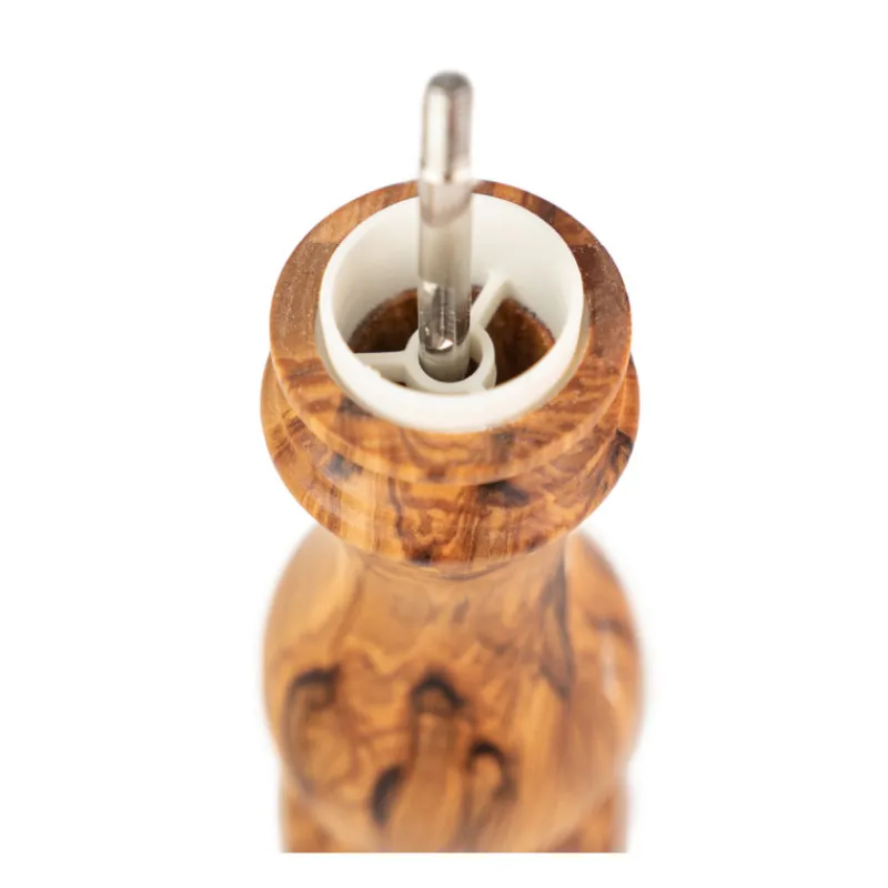 Le moulin à sel est fabriqué en France et conçu en bois d’olivier pour apporter de la noblesse et du caractère à un ustensile du quotidien. Équipé d’un bouton bijou argenté en son sommet, le moulin à sel manuel permet le réglage de la mouture en serrant plus ou moins le bouton. Ainsi, vous obtiendrez une mouture fine en serrant le bouton bijou, et une mouture plus craquante en le desserrant. Le mécanisme en acier, particulièrement performant, est garanti sans limite dans le temps.