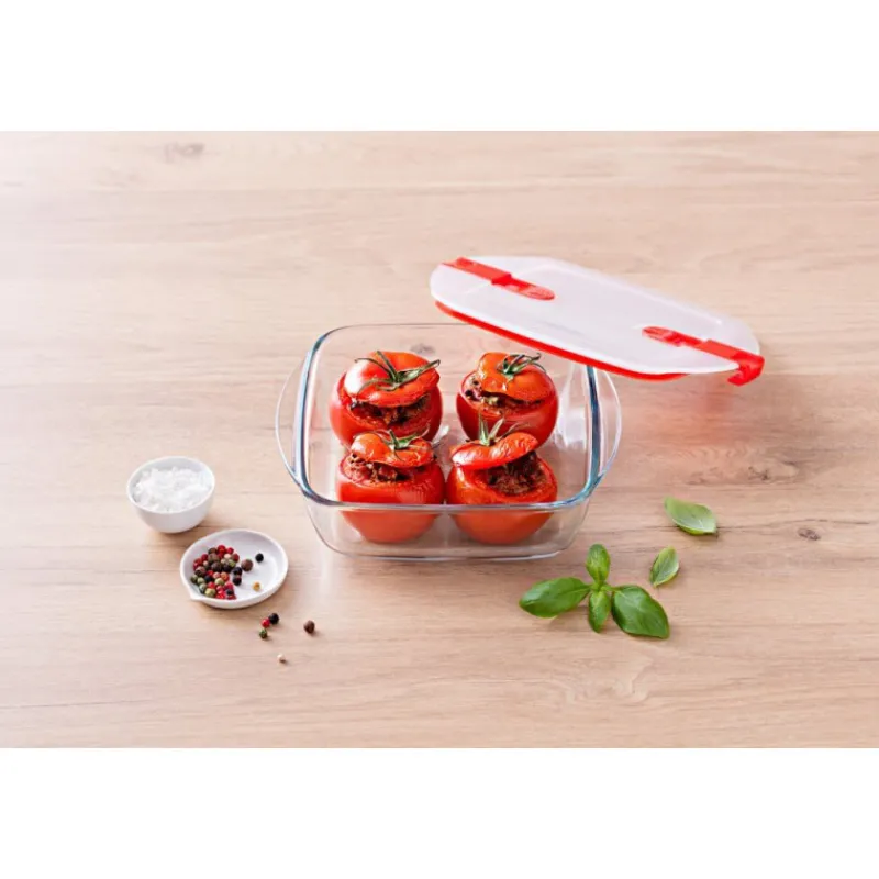 De plus, vous ne risquez aucune éclaboussures si vous faites réchauffer votre repas dans la boîte en verre carrée : son couvercle hermétique est pourvu de deux valves vapeur afin de le garder sur la boîte. Les attaches coulissantes du couvercle sont ergonomiques pour vous en faciliter l’usage. La boîte hermétique Pyrex est un ustensile de premier choix pour la conservation de tous types d’ingrédients.