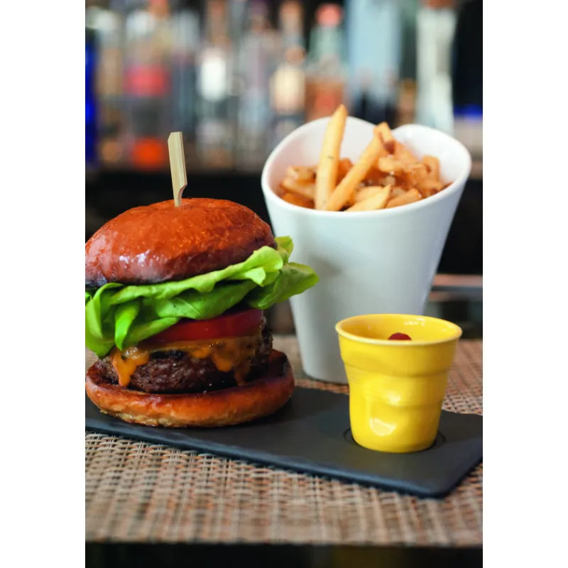 Cette assiette, dotée d’une encoche de 5 cm de diamètre, vous permettra de réaliser de belles assiettes avec un gobelet Revol 8cl dans lequel vous pourrez verser Espresso, sauce et autres préparations.