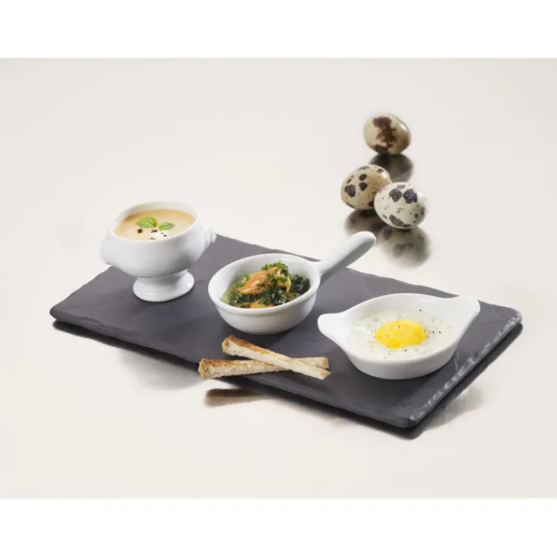 Basalt : Cette collection comprend des assiettes, des plateaux et des bols pour une présentation créative. La collection Basalt imite parfaitement l’ardoise tout en préservant les nombreux avantages de la porcelaine. Avec ces lignes à la fois sobres et finement travaillées, les ustensiles Basalt seront aussi bien appréciés au restaurant que chez vous!