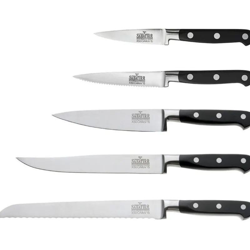 - Manche des couteaux en ABS noir, fixés par 3 rivets