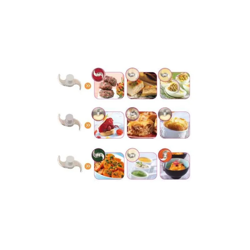 - Couteau lisse avec capuchon démontable : gros et fins hachages + sauces, émulsions