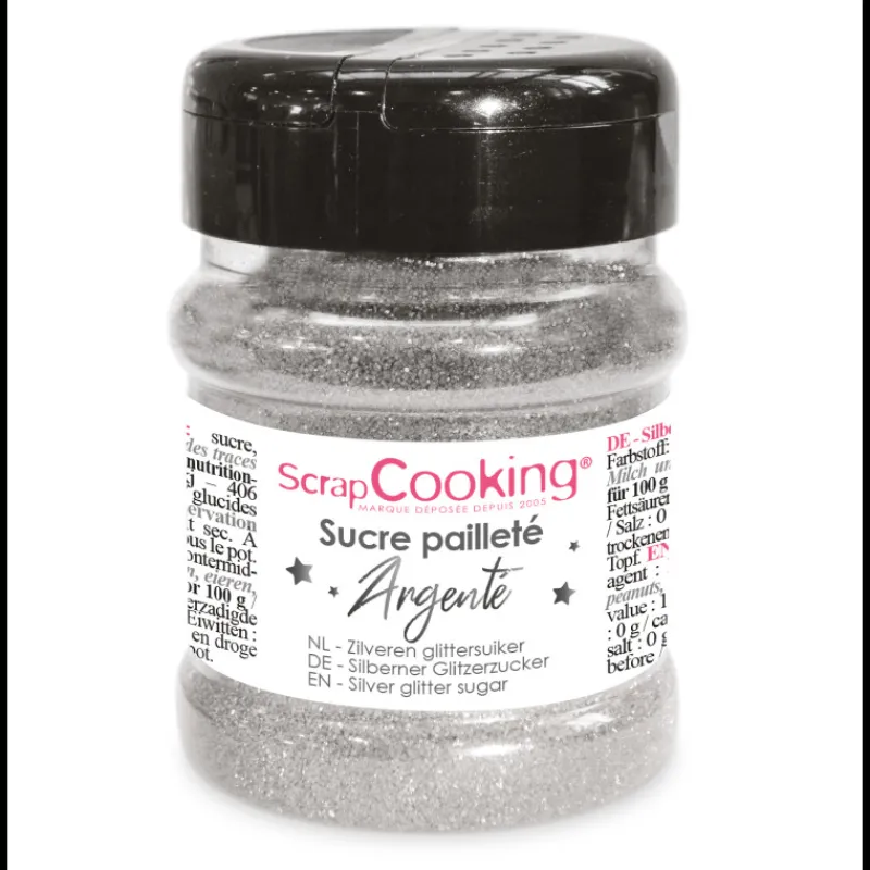 Éblouissez vos rêves qui sommeillent dans vos cuisines, habiller vos créations de ces paillettes alimentaires grâce au Sucre Pailleté Argenté 160 g Scrapcooking vos pâtisseries brilleront toujours et marqueront les esprits.