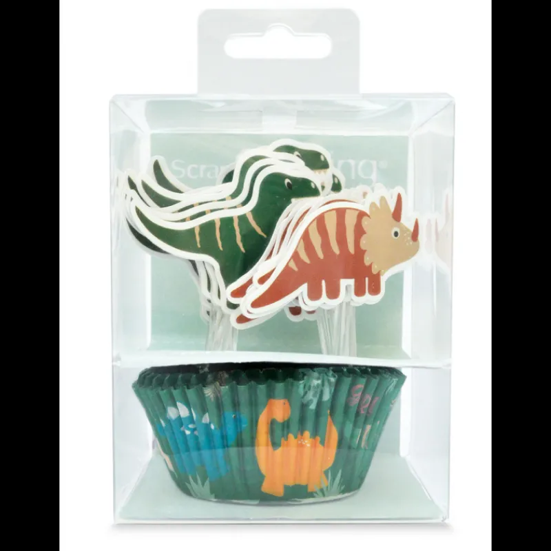 24 Caissettes Cupcakes + 24 Cake Toppers Dinosaure Scrapcooking