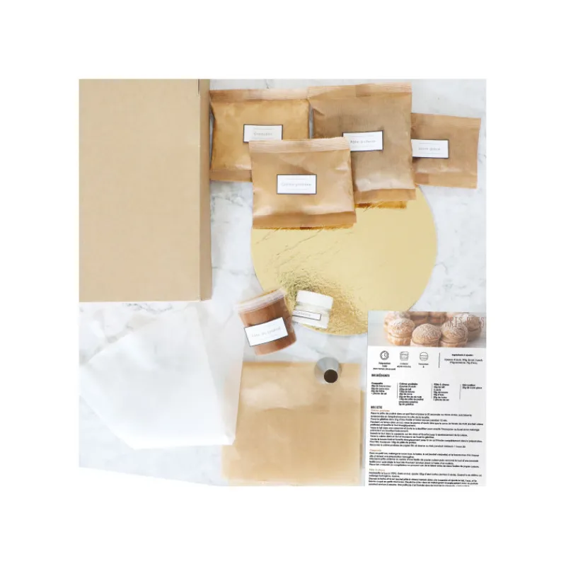 Ce kit de pâtisserie vous transporte dans l’univers gourmand de la célèbre pâtisserie Paris-Brest.