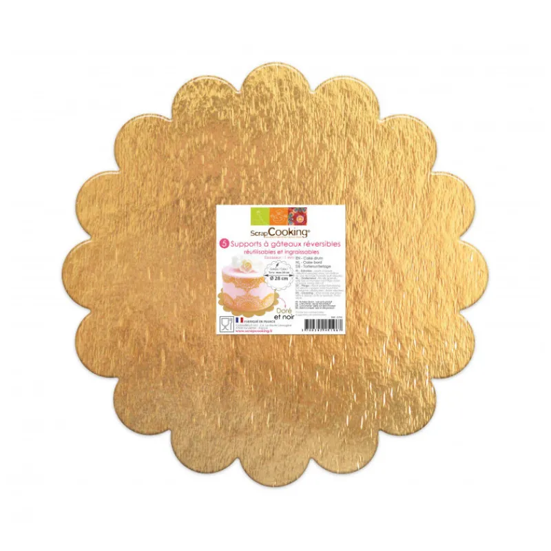 Présentez vos gâteaux avec élégance avec un support gâteau en carton réversible. Une face noire, une face dorée pour varier les plaisirs. Simple et élégant, le Support Gâteau Or et Noir Rond Cannelé Ø24cm x5 Scrapcooking est réutilisable.