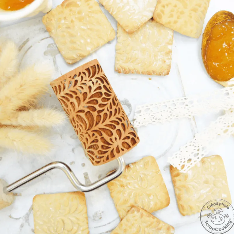 Transformez un ustensile traditionnel en véritable objet de décors en vous procurant le mini-rouleau en bois Scrapcooking. La surface recouverte de dessins en forme de gouttes de ce rouleau ondines a pour fonction d’imprimer avec aisance des motifs élégants sur vos pâtes à biscuits par exemple.