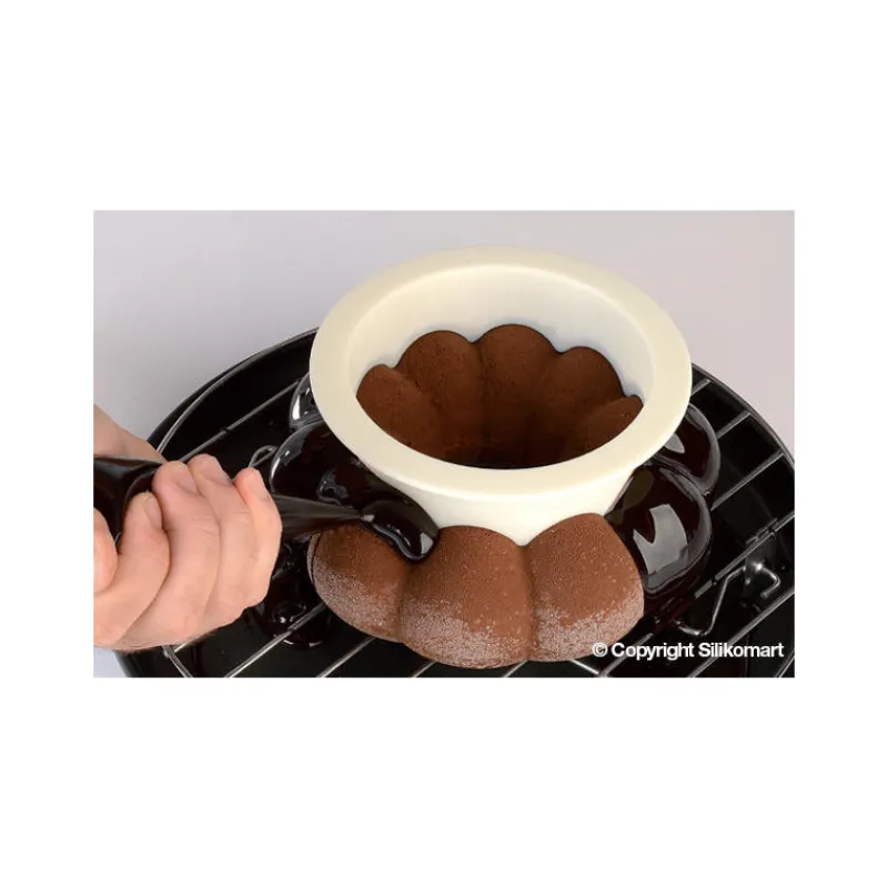 Ce Kit Moule silicone Magia del Tempo 155 mm Silikomart Professional vous permet de réaliser un dessert original et haut en couleur. Ce kit est muni d’un séparateur qui se place sur le dessus de votre gâteau pour former deux parties, et qui permet de couler deux glaçages aux couleurs différentes ou jouer avec les textures pour rendre votre gâteau unique. Pour réaliser vos couleurs, vous pouvez sélectionner deux colorants alimentaires de la même famille de couleur pour jouer avec le dégradé, ou réalisez une partie avec un glaçage brillant et la seconde avec un spray alimentaire qui vous permettra de jouer avec les textures.