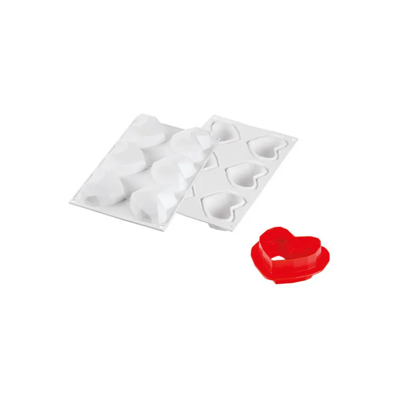 Moule Silicone 6 Coeurs Origami 82,6 x 74 x h35 mm 110ml SilikoMart Professional