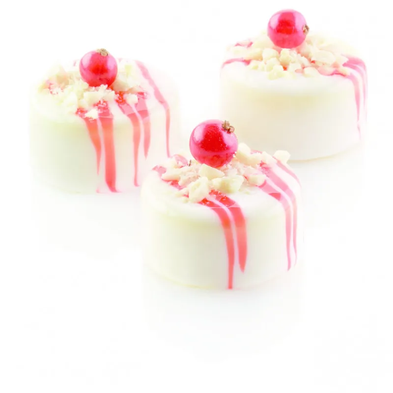 Démouler vos 96 empreintes sera un jeu d’enfant grâce aux propriétés anti-adhésives du moule pâtisserie ! Afin de magnifier vos créations, nappez-les de glaçage miroir et ajouter quelques morceaux de chocolat blanc pour une note craquante !