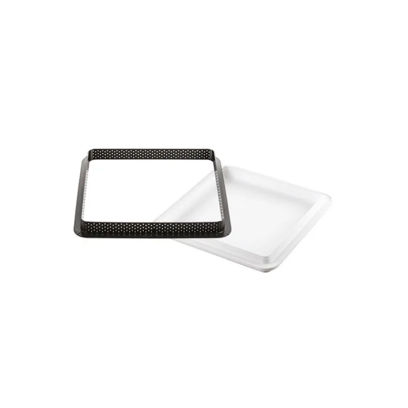 Adepte des pâtisseries ? Les tartes sont vos péchés mignons ? Troquez votre moule à tarte rond traditionnel pour un moule ultra moderne et élégant. Et pour cela, rien ne vaut les moules à tarte Silikomart ! D’une qualité inconditionnelle, les plus grands pâtissiers se les arrachent afin de présenter des réalisations qui sortent de l’ordinaire. En effet, grâce au Kit de Pâtisserie comprenant un moule en silicone doté d’une empreinte pouvant contenir jusqu’à 560 ml et d’un cadre perforé carré, réalisez vos plus belles tartes carrées ! Le moule silicone est idéal pour contenir un crémeux ou une mousse qui constituera la garniture de votre tarte. Quant au cadre à tarte perforé 20 cm, il est parfaitement adapté à la réalisation de votre base croustillante et fondante. Vous pouvez être sûr que votre cuisson sera totalement homogène puisque les petits orifices présents sur le cadre composite permettent à l’air chaud de circuler.
