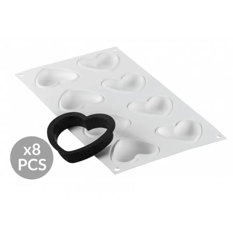 Kit Moule Silicone 8 Tartelettes Cœur 8 x 7 cm Silikomart Professional