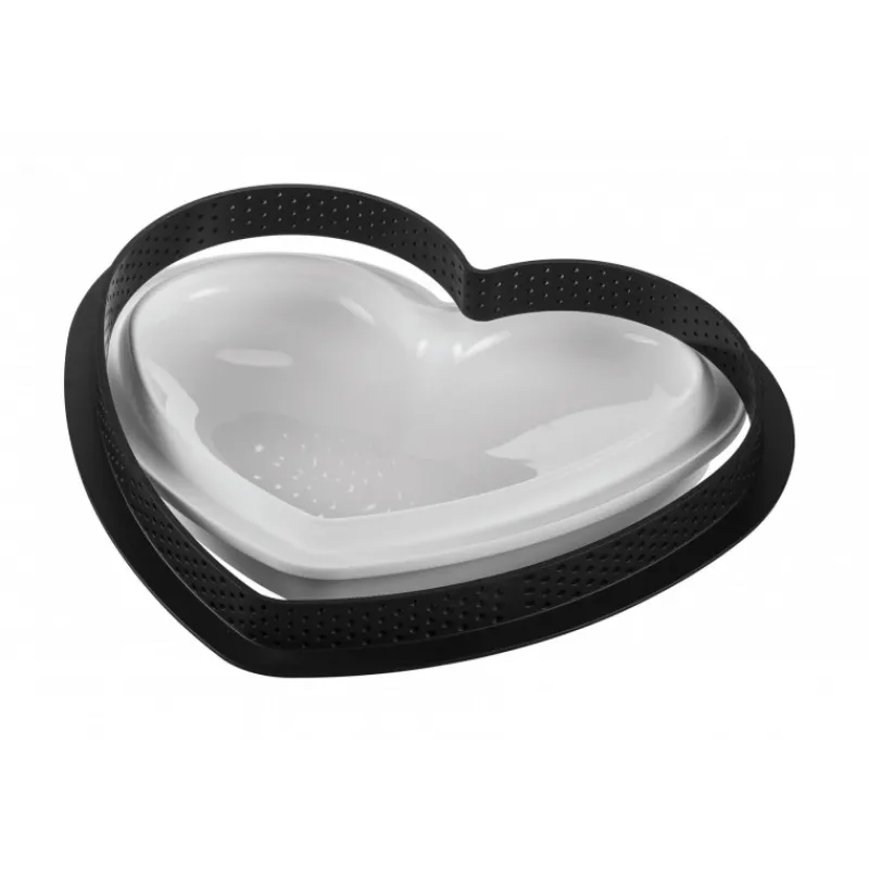 Ce kit complet comprend un moule silicone en forme de cœur et un cercle à tarte perforé également en forme de cœur, conçu pour vous offrir des créations aussi belles que délicieuses.