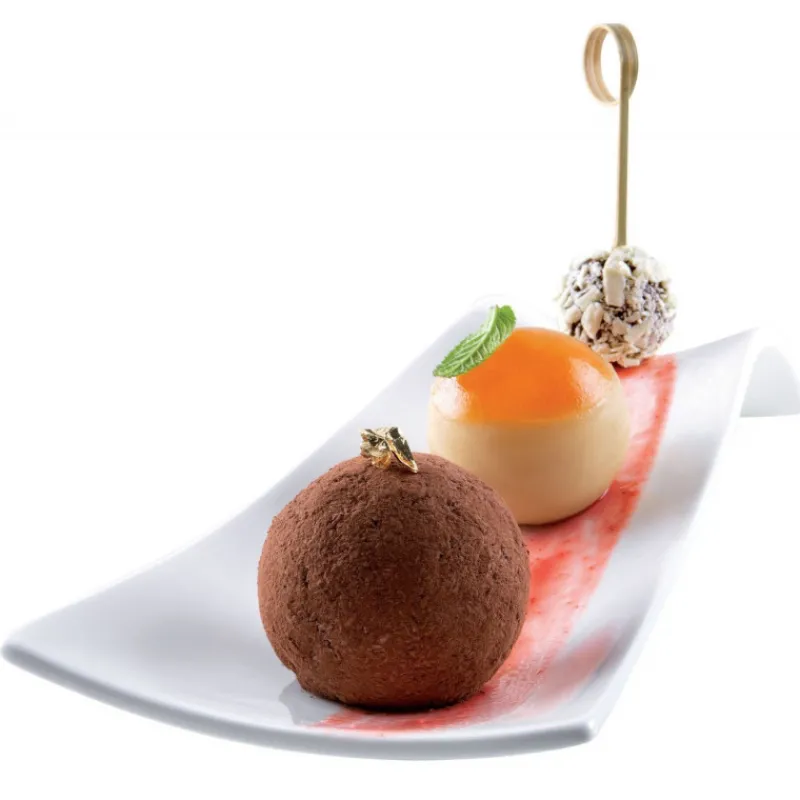 Réalisez de jolis gâteaux 3D design et original pour vos invités avec le Moule 5 Sphères Silicone Silikomart. Composé de 2 parties A et B pour former vos sphères, et d’un plateau support, ce moule silicone vous permet de créer des pâtisseries et autres desserts à l’assiette avec des sphères parfaitement dessinées et une présentation élégante et raffinée. Préparations chaudes ou froides, sucrées ou salées, ce moule s’adapte à toutes vos envies culinaires et résiste au four comme au congélateur. Le démoulage se fait facilement, tout comme le lavage, grâce aux propriétés anti-adhérentes du silicone.