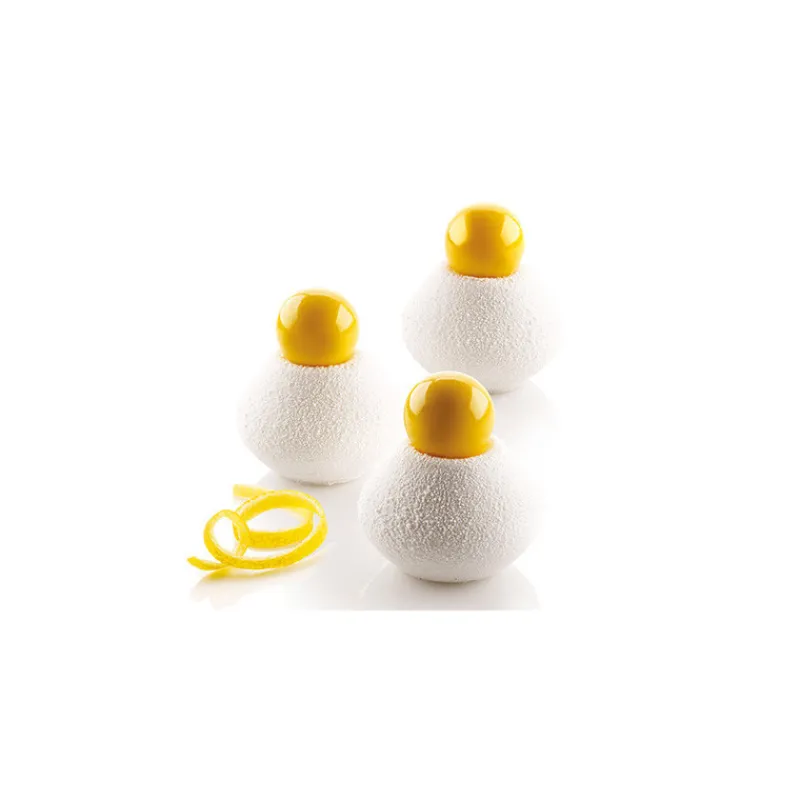 Pour un entremets individuel plein d’élégance, réalisez des flacons de parfum grâce au kit Fragrances Silikomart. Composé de 2 Moules en Silicone, vos desserts auront un volume total de 115 ml chacun. Le Moule Silikomart pour la base comporte 6 empreintes, tandis que le Moule Sphère pour la partie supérieur comporte 15 empreintes.