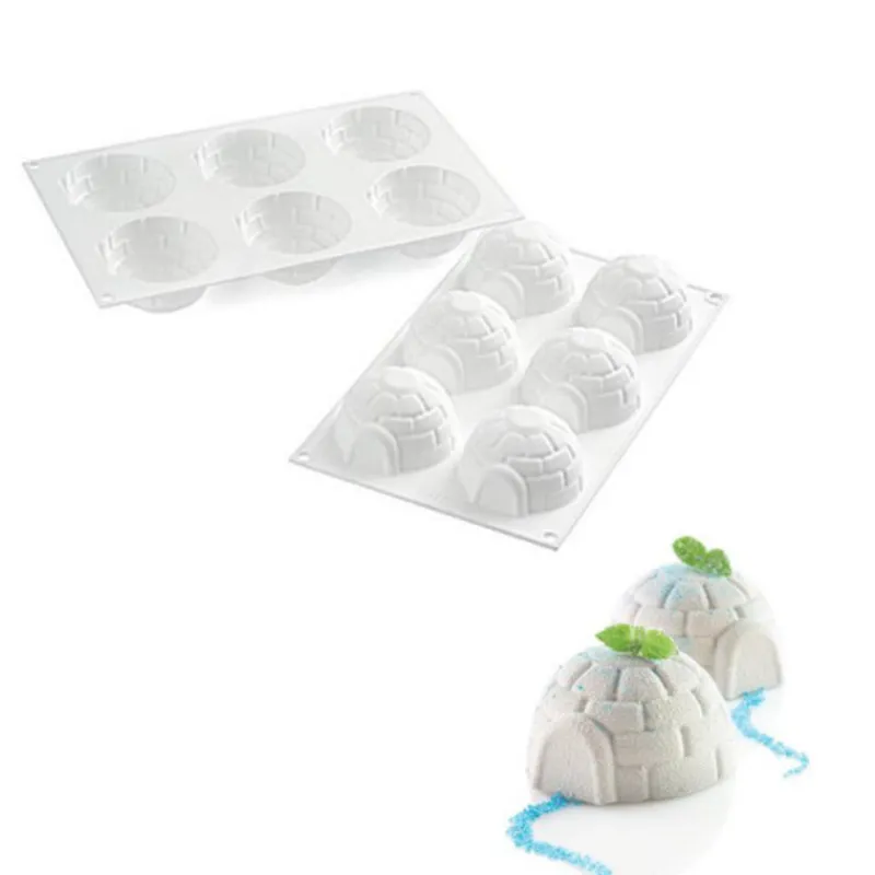 L’hiver débarque dans votre assiette avec ce Moule Silicone Igloos. Réalisez facilement 6 igloos individuels au réalisme parfait grâce aux détails du moule silicone Silikomart Professional.