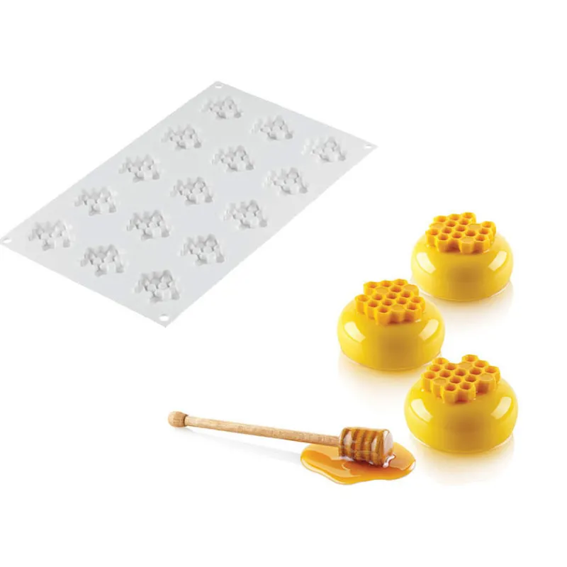 Fabriqué en Italie, ce Moule en Silicone Miel vous permettra de décorer des entremets individuels d’au moins 4,5 cm de diamètre.