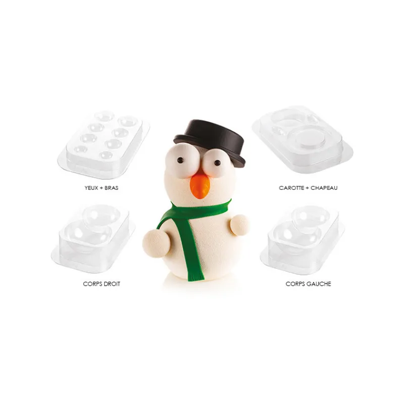 Cet hiver, montrez tous vos talents de chocolatier en réalisant un Bonhomme de Neige tout en chocolat ! Pour vous aider à y parvenir, découvrez le Moule Chocolat Silikomart Professional créé en collaboration avec le chef pâtissier et chocolatier espagnol Raul Bernal. Ce Kit contient 4 Moules Thermoformés divisés ainsi :