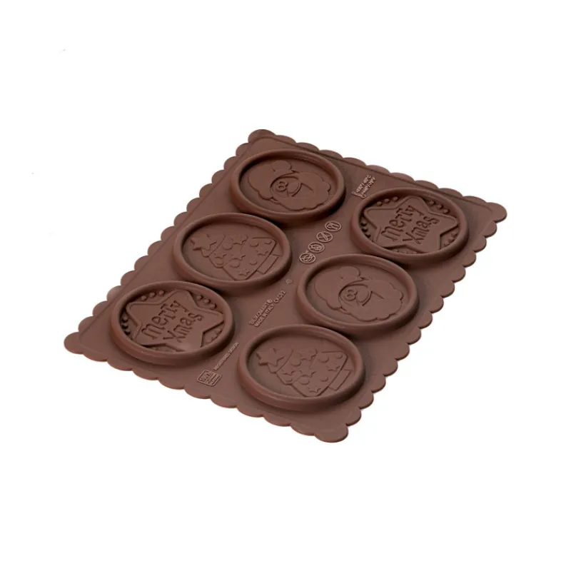 Profitez de la magie de Noël avec vos proches grâce à ce Kit Biscuit Chocolat Rond Noël Ø 5,7 cm (x6) Silikomart.