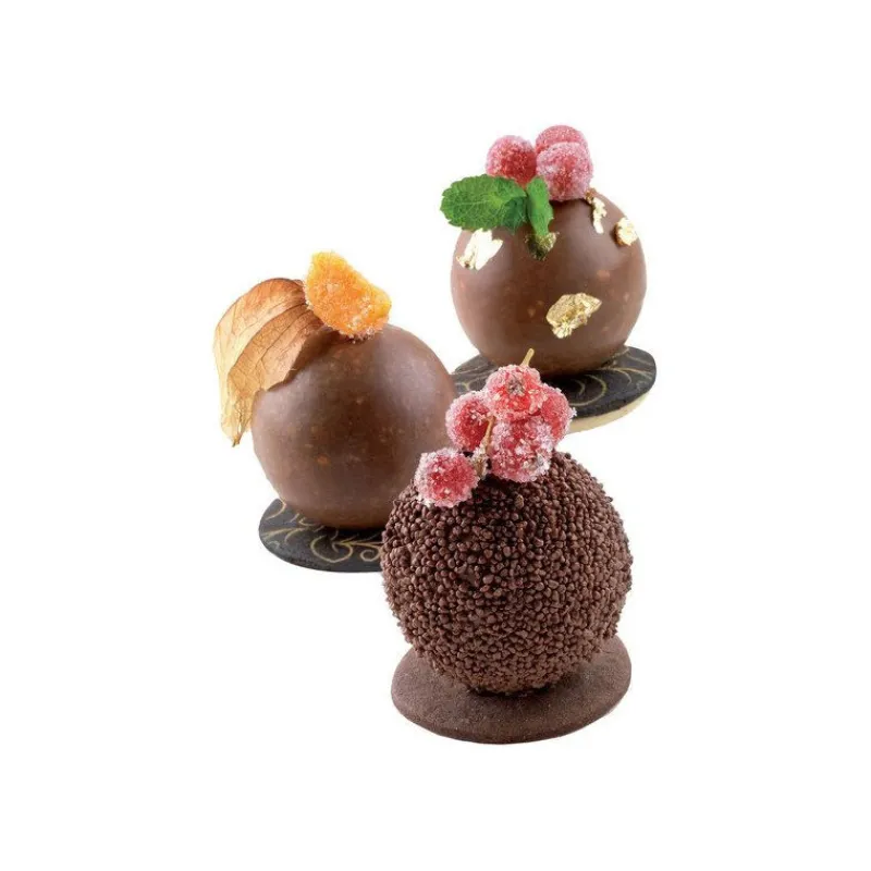 Des sphères parfaitement formées, une présentation à l’assiette design et originale, une décoration adaptable en fonction de vos envies… Voila quelques atouts du Moule Sphère en Silicone Silikomart, mais ce n’est pas tout ! Il passe au four (sans le plateau support) comme au congélateur et résiste donc aux températures les plus extrêmes (-60°C à +230°C), pour des desserts chauds ou froids. Il est composé de 2 parties A et B et d’un plateau support pour vous permettre de réaliser des pâtisseries parfaitement sphériques, et la partie supérieure est entièrement transparente pour avoir une visibilité totale de votre préparation.