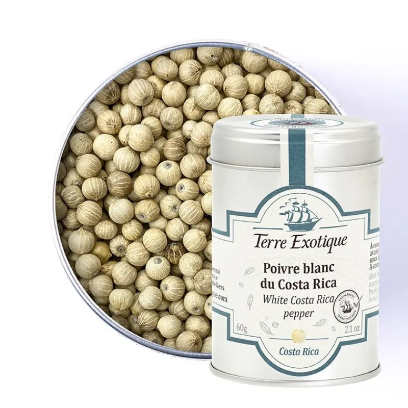 Découvrez le Poivre Blanc du Costa Rica 60 g Terre Exotique qui vous permettra de réaliser de délicieuses préparations aux saveurs gourmandes.