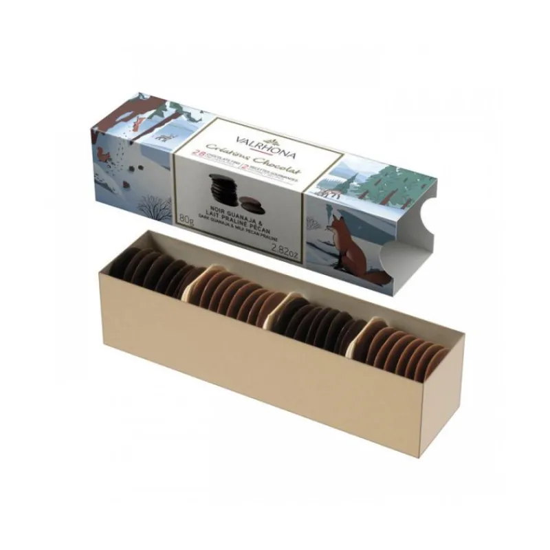 Assortiment Palets Chocolat Noir Guanaja et Lait Praliné Pécan 80 g Valrhona