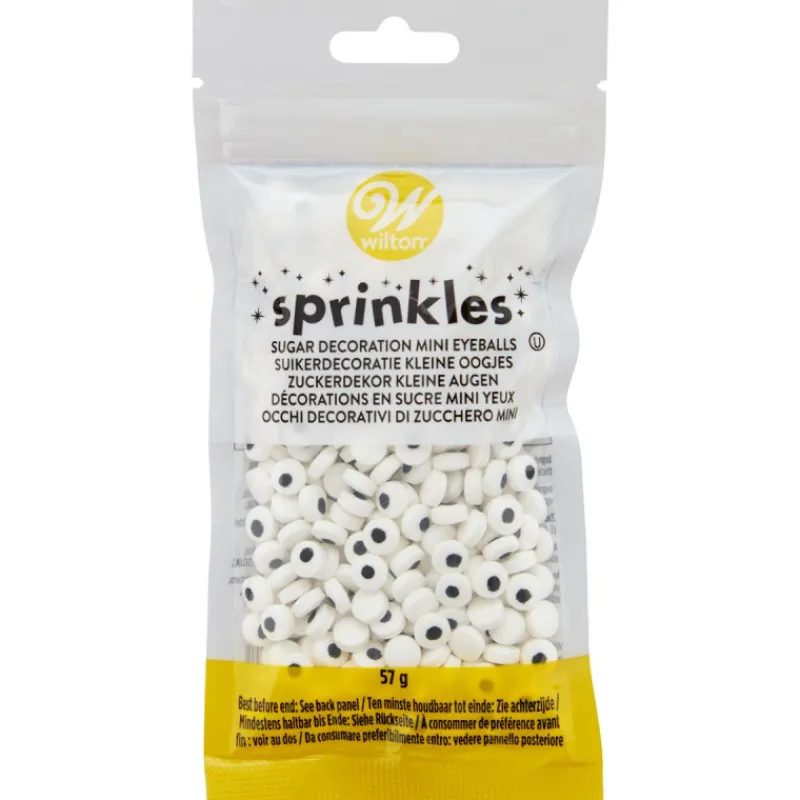 Créez de monstrueux biscuits pour Halloween grâce aux Mini Yeux en Sucre Wilton. Dans ce sachet de 57 g, retrouvez environ 350 Décorations en Sucre que vous pourrez disposer sur vos gâteaux et biscuits.