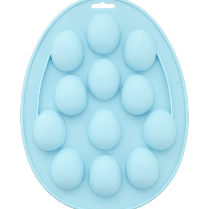 Profitez de ce moule en silicone au design original de forme ovale qui rappelle également le thème de Pâques. Garnissez les différentes cavités de chocolat, de pistoles déco melt ou encore de préparation à gâteau pour réaliser de merveilleux biscuits et chocolats en forme d’œufs de pâques.