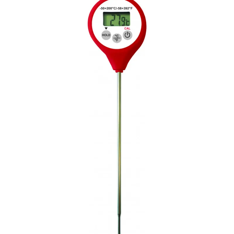 Grâce à ce thermomètre de cuisine, impossible de manquer sa recette ! Placée au c½ur des viandes, des poissons ou encore des pâtes à gâteaux, le thermomètre digital répond aux dernières normes HACCP pour professionnels puisqu’il affiche en quelques secondes la température, avec une précision à 0,5°C près. Grâce au code couleur rouge, les professionnels pourront facilement l’identifier comme ustensile pour la viande crue.