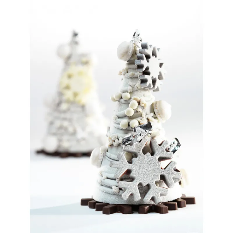 Pour un rendu festif nous vous conseillons de pulvériser du spray alimentaire sur vos chocolats une fois démoulés afin de leur donner une teinte cuivrée, argentée ou même dorée. Si vous souhaitez obtenir un effet trompe l’oeil pulvérisez du colorant alimentaire blanc effet velours sur vos chocolats en forme de flocons. Il ne vous reste plus qu’à déposer vos décors en chocolat sur vos bûches ou desserts de fêtes.