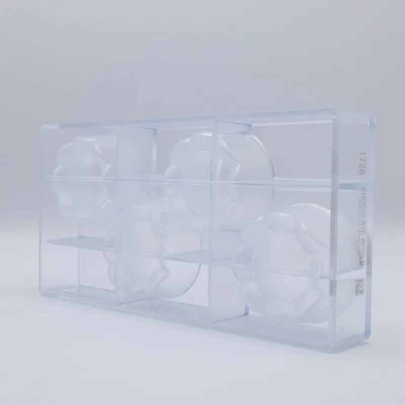 Ce moule à chocolat, conçu en Tritan, permet de créer quatre fleurs délicates de 6,8 cm avec une hauteur de 3,5 cm chacune. D’un poids total de 516 g, chaque empreinte pèse 129 g, offrant ainsi des fleurs en chocolat solides et élégantes.