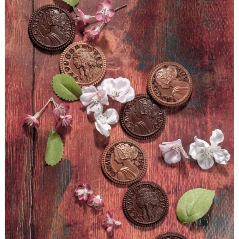Pour des pièces en chocolat à croquer, optez pour le Moule Chocolat Pièce Chocolate World. Celui-ci dispose de 10 empreintes : 5 représentent un profil de femme façon Belle Epoque, tandis que les 5 autres représentent un profil de femme avec une coiffe.