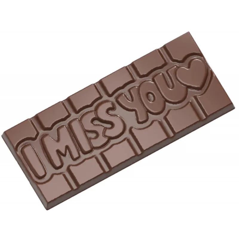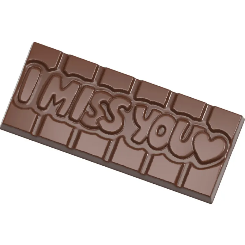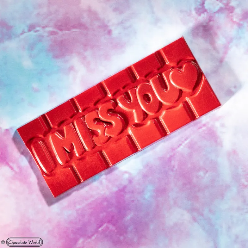 Vous êtes loin de votre bien-aimé(e), de votre mère ou votre meilleur(e) ami(e) ? Envoyez-lui une tablette de chocolat maison avec le moule chocolat tablette I miss you Chocolate World et montrez-lui ainsi que vous pensez à lui/elle !
