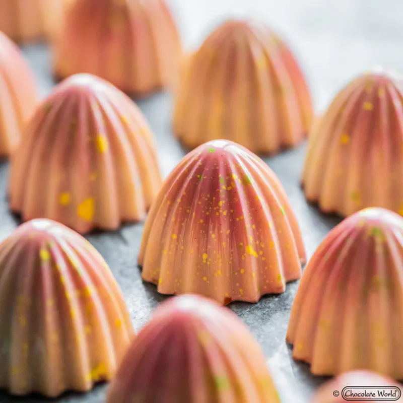 La forme originale et généreuse du moule à chocolat The Juicer vous offre d’infinies possibilités pour confectionner des chocolats maison. Avec du chocolat de couverture et le moule en polycarbonate Chocolate World, il vous sera aisé de faire des chocolats de qualité professionnelle. Les 21 empreintes du moule The Juicer offre une qualité de détails incomparable qui restera intacte au démoulage.