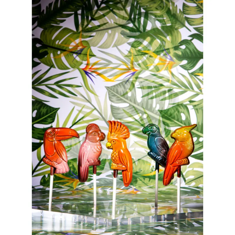 Succombez à la Tendance Tropicale et confectionnez des sucettes en chocolat qui prendront la forme d’oiseaux tropicaux : perroquets, toucan, ara, cacatoès etc. La plaque à chocolat est composée de 5 empreintes toutes différentes vous permettant la réalisation de 5 sucettes en chocolat d’une hauteur de 10 cm environ.