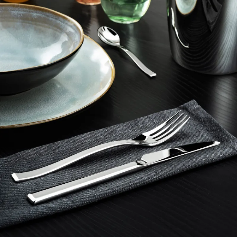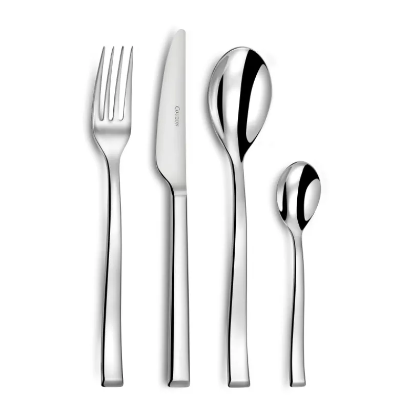 - Dimensions : Fourchette table : 21 cm, Cuillère table : 21 cm, Cuillère café : 14 cm, Couteau steak : 23,5 cm