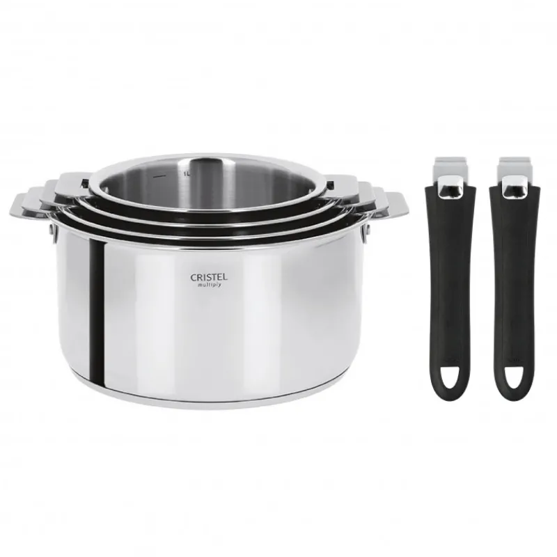 Lot de 4 Casseroles inox Casteline avec 2 Poignées Mutine Amovibles Cristel