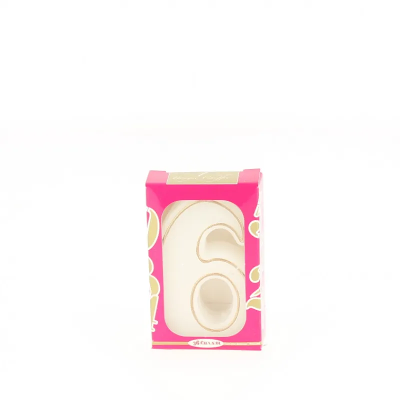Bougie anniversaire chiffre 6 blanche avec filet doré