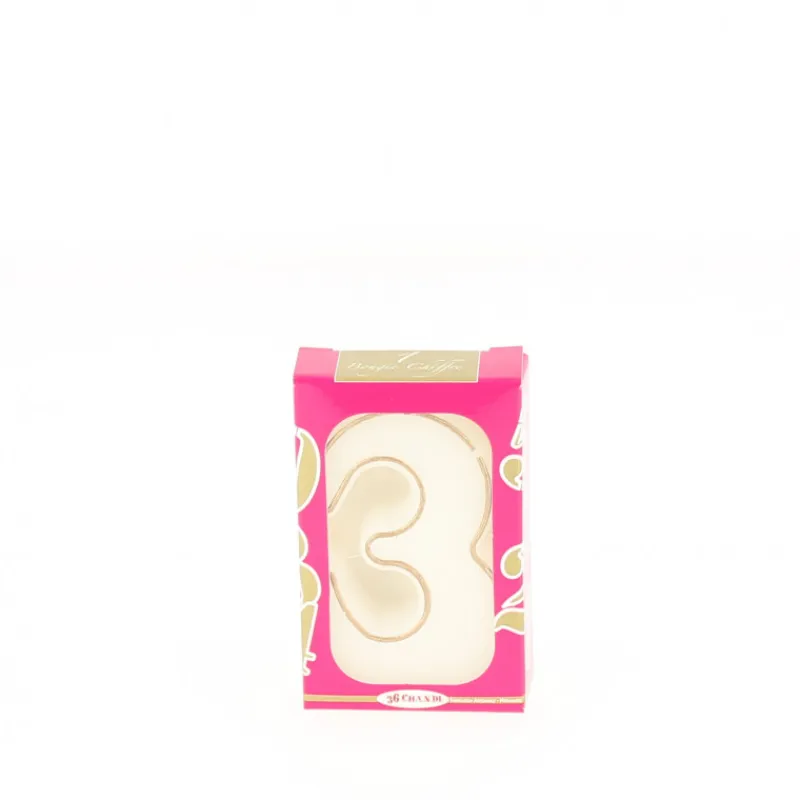 Bougie d’anniversaire chiffre 3 blanche avec filet doré