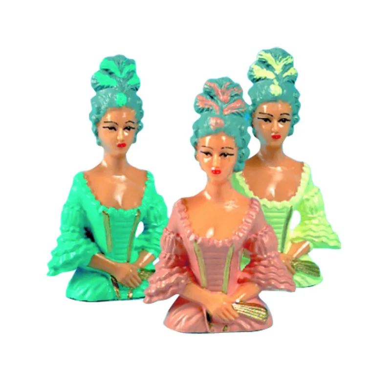 Pour un dessert plein d’élégance, optez pour un Gâteau Robe de Marquise sur lequel trônera l’un de ces 6 Bustes de Marquise. Dans cette boîte, retrouvez 6 coloris différents pour ces Bustes de Marquise d’une hauteur de 10,5 cm. Le Buste de Marquise est en plastique et sera donc réutilisable.