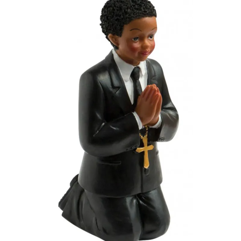Vous allez célébrer la communion de votre enfant ? Décorez votre gateau de communion avec cette figurine de communion garçon métisse agenouillé en train de prier.