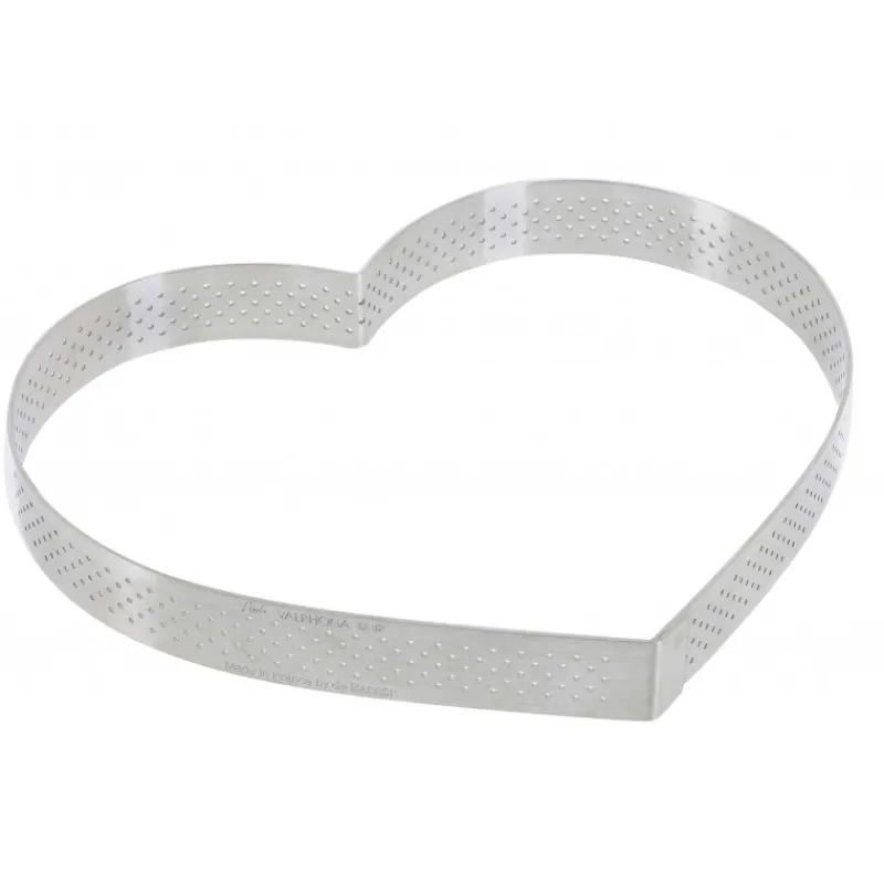 Faites de belles créations pour épater vos invité avec ce cercle perforé en forme de coeur. Ce cercle à tartes d’une hauteur de 2 centimètres, est fabriqué en acier inoxydable et avec des bords droits. Vous aurez ainsi une cuisson parfaite et uniforme pour une pâte lisse, dorée et croustillante.