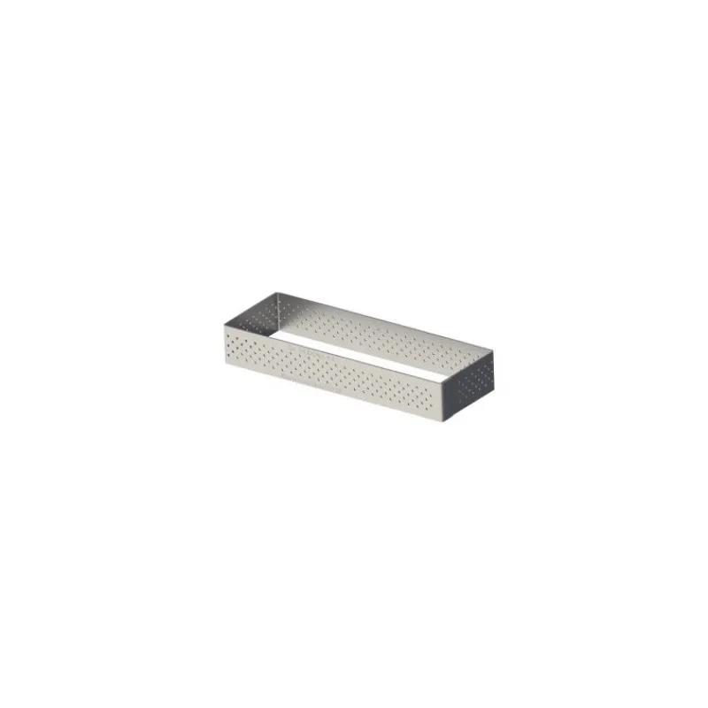 Le rectangle perforé est parfait pour la cuisson des pâtes sablées, feuilletées ou brisées. Les bords droits permettent une finition parfaite des gâteaux, des entremets, des tartes… le rendu sera impeccable. Ce cercle à pâtisserie est adapté pour 6 personnes.