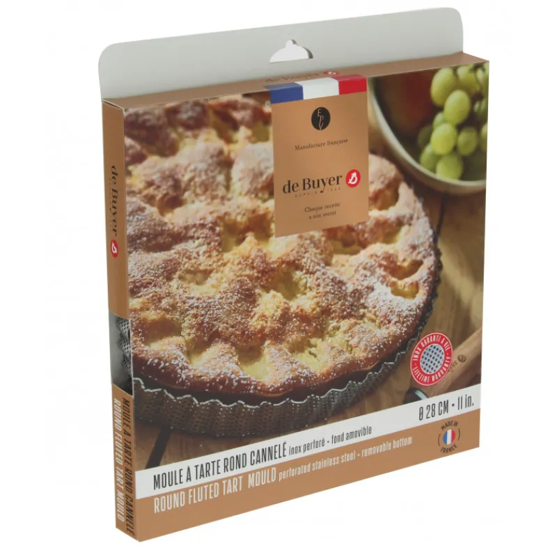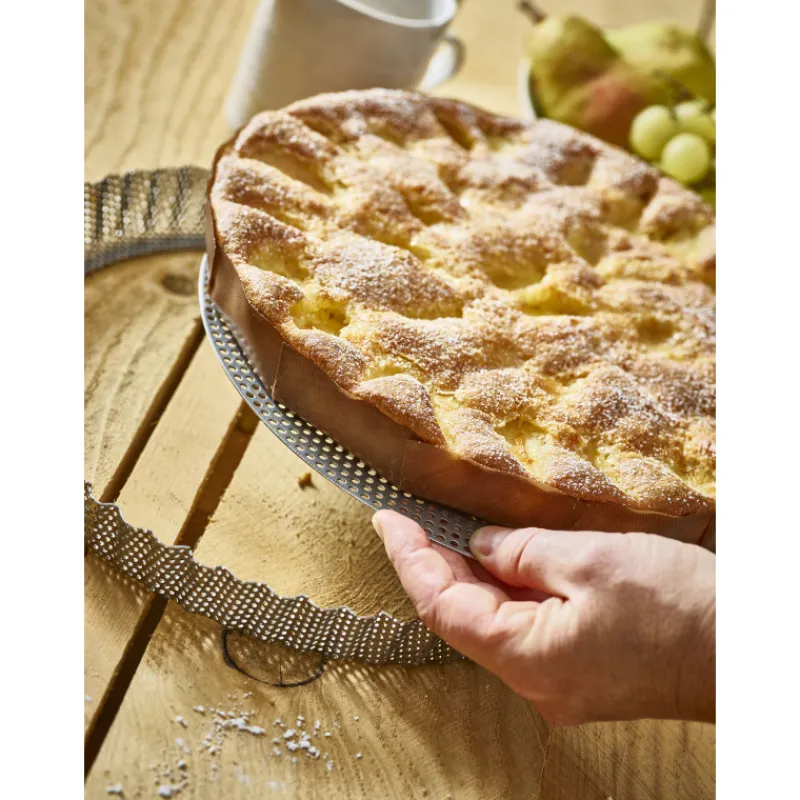 Moule à Tarte Cannelée Inox Perforé Amovible Ø 28 cm x H 2,5 cm De Buyer