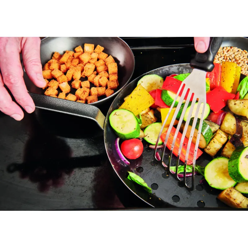 FIN DE SERIE Poêle à Légumes Perforée Tôle Bleue Ø 28 cm Outdoor De Buyer